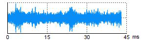 Wykres pokazuje amplitudę sygnału ultradźwiękowego w czasie (0–45 ms).