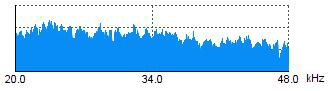 Wykres pokazuje rozkład energii sygnału w paśmie 20–48 kHz.