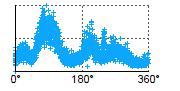 Wykres pokazuje rozkład wyładowań względem kąta fazowego napięcia 50 Hz (0°–360°).